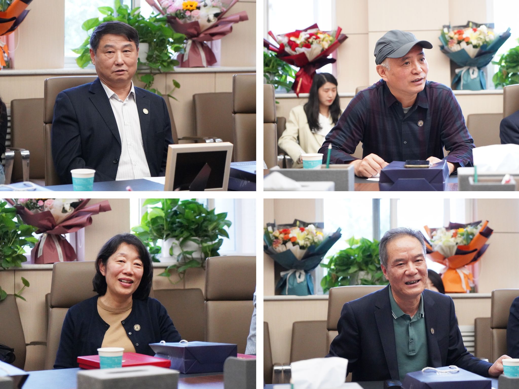 参会的教师代表结合自身在学校成长发展经历,回忆了与几位老师一起工作、奋斗的点滴往事,大家表示要学习几位前辈们爱岗敬业的教育情怀与育人传统,接好人才培养的接力棒。几位新入职的青年老师表示,几位前辈在人文素养、科学精神、广博知识等方面都树立了很好的榜样,自己也将继续不忘初心,牢记使命,用老一辈的理想和精神不断鼓舞、激励、鞭策自己前行。