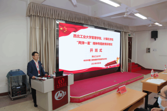 计算机学院党委书记李春科致辞,他指出,“两弹一星”精神作为中华民族精神谱系中重要组成部分,传承、弘扬和践行好“两弹一星”精神是助力实现科技自立自强的时代的要求,是我们新时代高校科技工作者当之无愧的责任和使命。