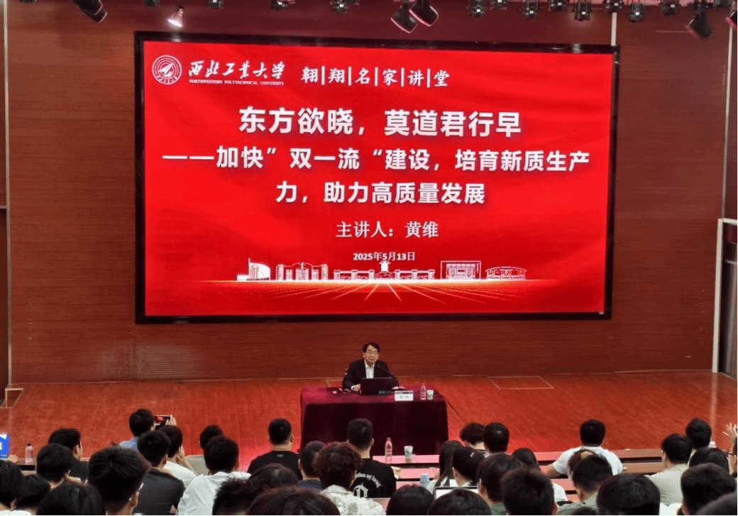 5月13日,黄维院士以《培育新质生产力,助力高质量发展》为题作报告,结合四十年科研经历,分享开拓柔性电子领域的奋斗历程,以“板凳要坐十年冷”喻基础坚守、“敢为天下先”述创新突破,强调科学家价值在于探索真理、服务国家,勉励学子传承“总师文化”,胸怀“国之大者”勇攀高峰,锤炼本领攻克“卡脖子”技术,将理想融入强国伟业。