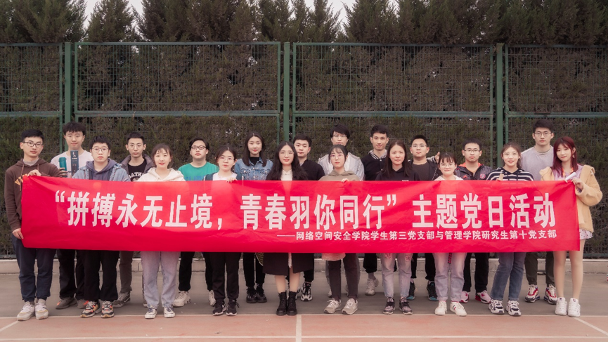 研究生第十党支部与网络空间安全学院学生第三党支部在星天苑羽毛球场联合开展主题党日活动——“拼搏永无止境,青春羽你同行”羽毛球趣味比赛,以全面提高支部党员素质,展示党员的精神风貌,充分发挥党员先锋模范作用。