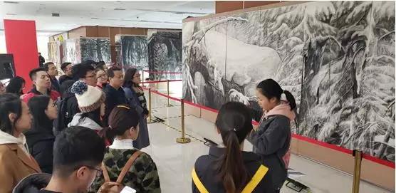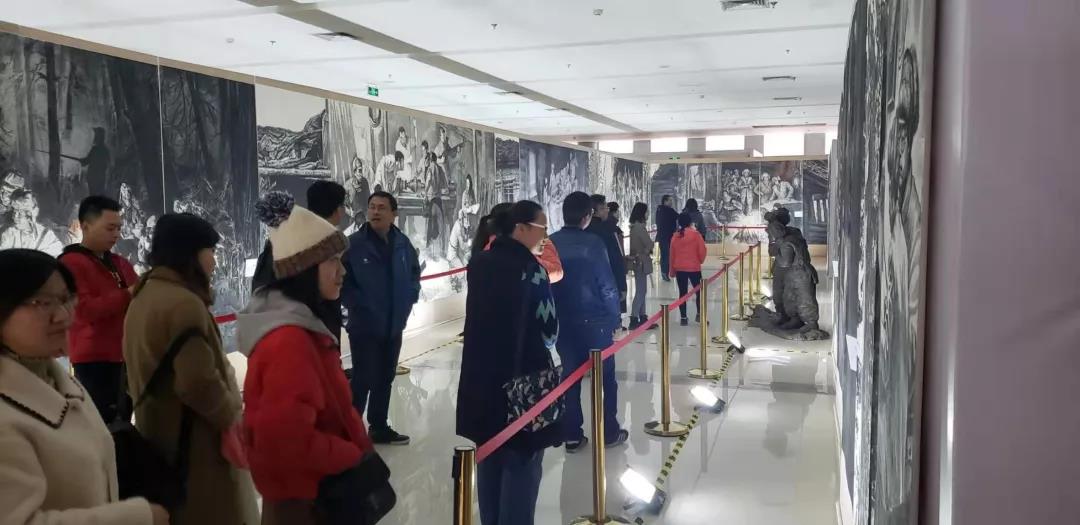 长安校区启真楼一楼大厅的“抗联之魂”大型全景素描艺术综合体展览。