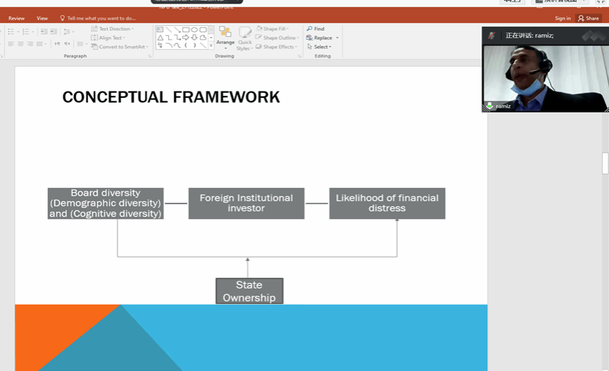 Ramiz基于自己的研究,分享了其在公司治理的丰富研究经验,从多维度阐述了董事多样性影响公司财务行为的研究脉络。在此基础上,Ramiz详细定义了董事多样性,并引出董事会多样性如何影响公司财务困境这一有趣话题。
