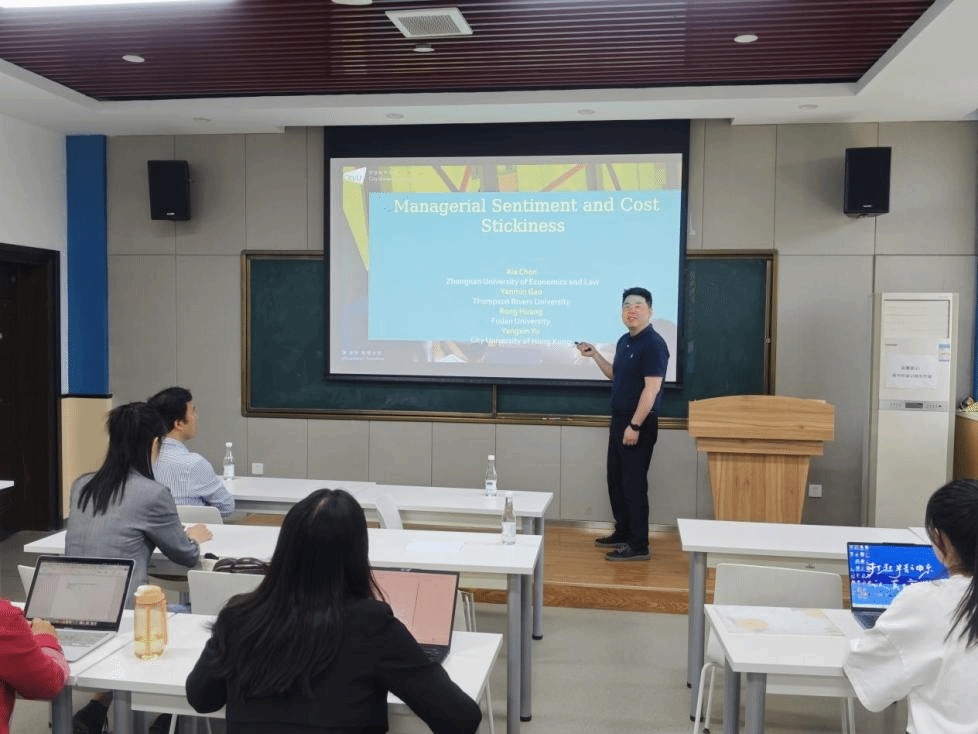 2024年4月25日上午,应开车漫画 邀请,香港城市大学商学院会计系余扬新教授在学院214教室作了题为“Managerial Sentiment on Firms’ cost Stickiness”的学术报告会,讲座由会计系教师封华主持,学院30余位同学和会计系、工商系10位老师参加。