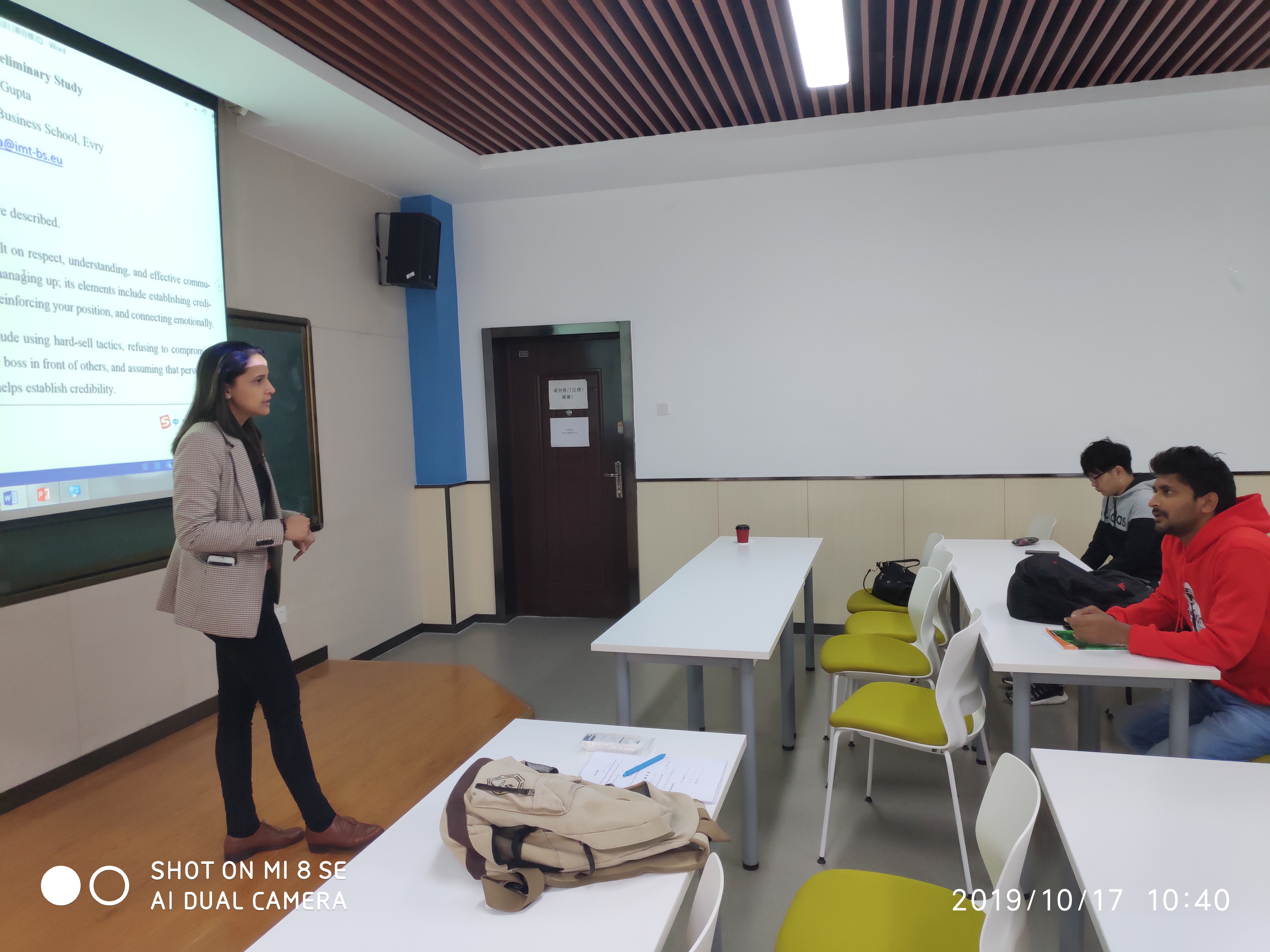 Gupta教授的报告题目为“Managing Up: A Preliminary Study”。在报告中,她首先解释了不同学者对于向上管理的定义,并强调了向上管理对于个人职业发展以及组织发展的重要性。接着,Gupta教授介绍了向上管理的方式途径,其中包括建立信誉,制定共同的目标,以及建立情感联系。同时,Gupta教授也强调了说服策略在向上管理中的重要作用。