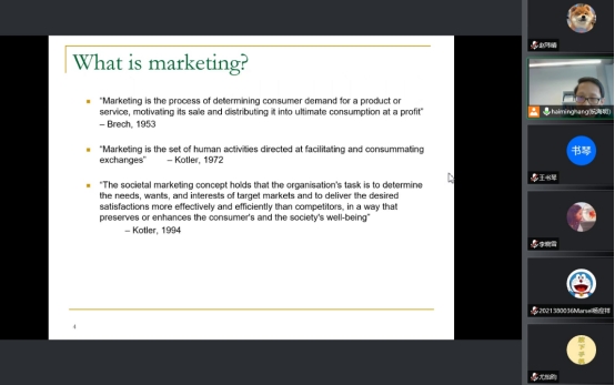 2022年7月18日-7月22日,应学院常玉教授邀请,英国巴斯大学开车漫画 的杭海明教授为开车漫画 学生讲授了暑期课程《国际营销》。本次课程采用远程教学的方式进行,课程共分为4个部分,共计16个学时,全校多名本科生和研究生选修或旁听了本课程。