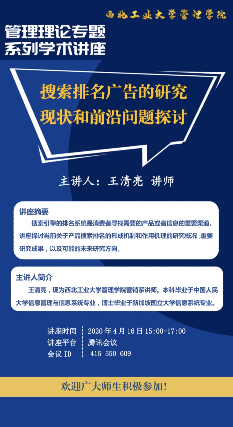 搜索引擎的排名系统是消费者寻找需要的产品或者信息的重要渠道。讲座探讨当前关于产品搜索排名的形成机制和作用机理的研究概况,重要研究成果,以及可能的未来研究方向。