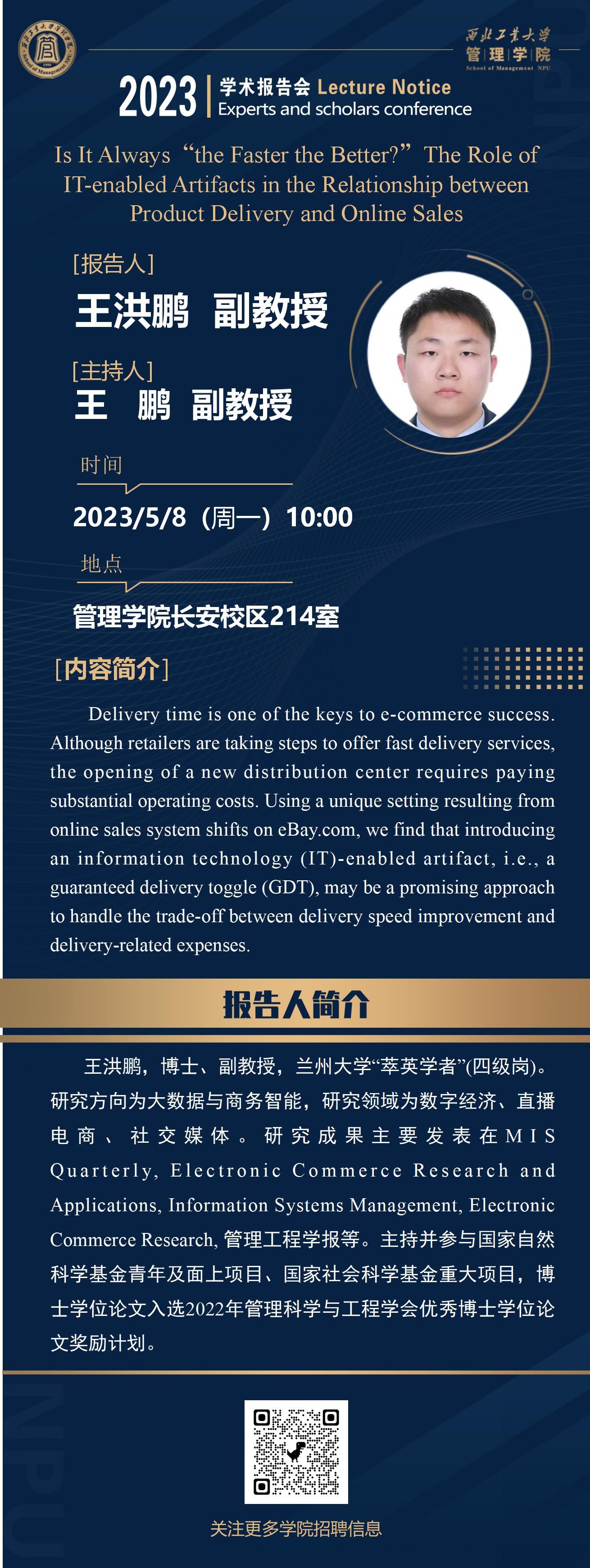 【学术报告】Is It Always“the Faster the Better?”The Role of IT-enabled Artifacts in the Relationship between Product Delivery and Online Sales