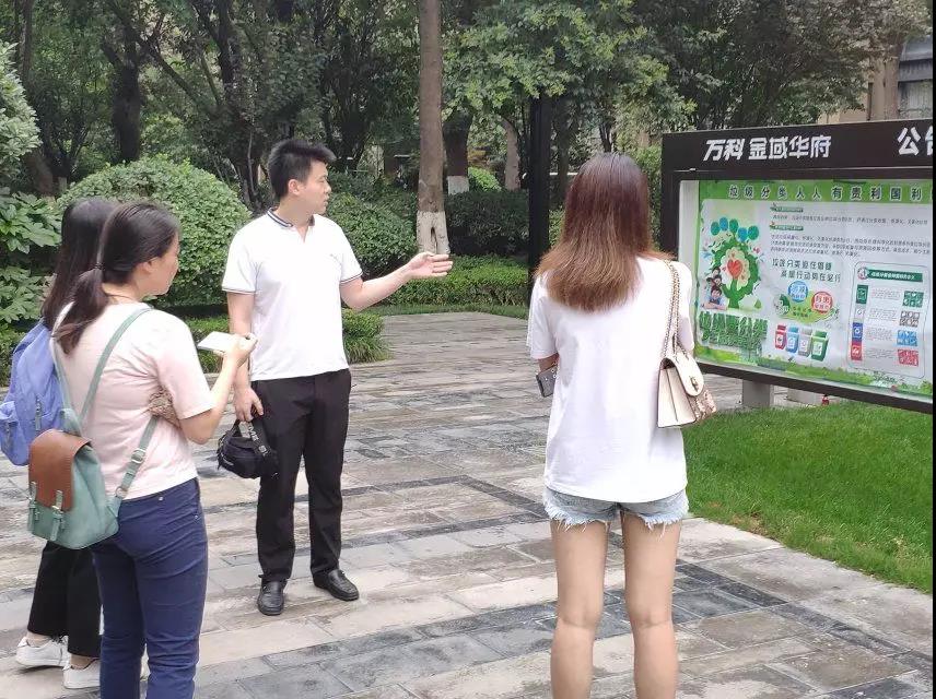 7月18日,在西安市人民政府鞠科长的带领下,实践队参观了西安市垃圾分类示范小区:万科·金域华府。小区干净整洁,管理有序,四类垃圾的分类细致认真。垃圾分类的管理方法非常巧妙:整个小区只有一个有害垃圾桶,利于管理操作;工作人员定时定点监督并协助业主分类;小区物业培养分类意识,营造环保氛围等。鞠科长表示,在今后这样的示范小区将在全市范围内的小区进行推广。