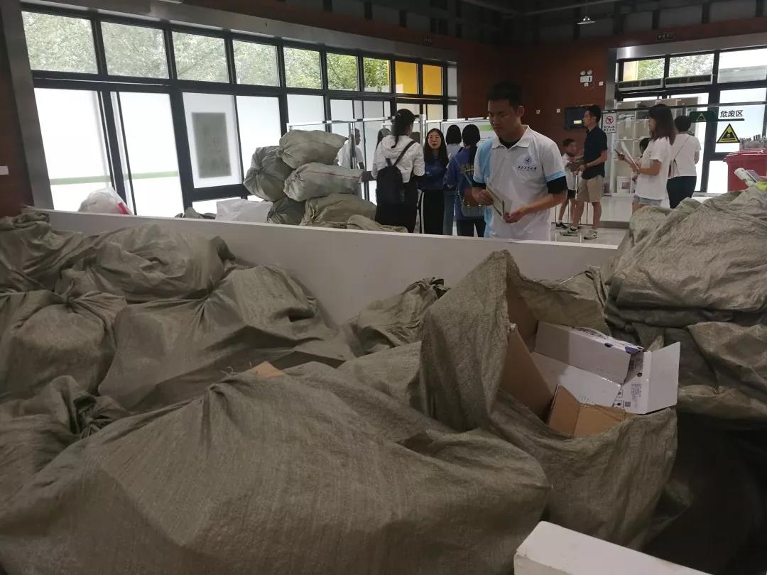 实践队来到了浐灞垃圾分拣中心。灞桥区作为西安市垃圾分类的示范区,宣传与实行非常到位。垃圾分拣中心主要分拣可回收垃圾和有害垃圾,将其归类为黄纸类、酒瓶类、塑料类、废纸类、电池类等。不同种类的垃圾在分拣结束后回收利用或者特殊处理。为保障垃圾分类落地落实,分拣中心提出“互联网+垃圾分类”方法,居民用垃圾换积分,积分可以兑换不同的生活用品,极大提高了市民垃圾分类的主动性。