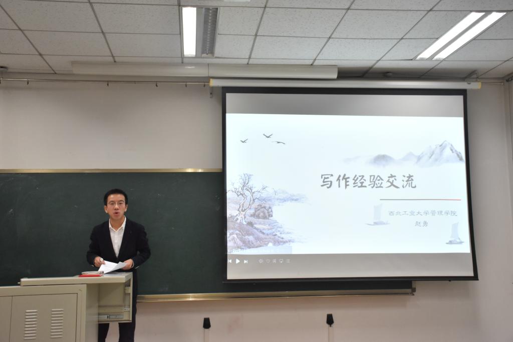颁奖仪式结束后,赵勇老师为征文大赛获奖同学分享了自己多年写作的经验与心得。赵勇老师通过一个个生动的例子,阐述了自己对于写作中常遇到问题的看法并希望通过与同学们写作经验的交流。赵勇老师同时还给同学们推荐了自己整理的书单,并表示希望多与同学们进行写作上的交流与探讨。