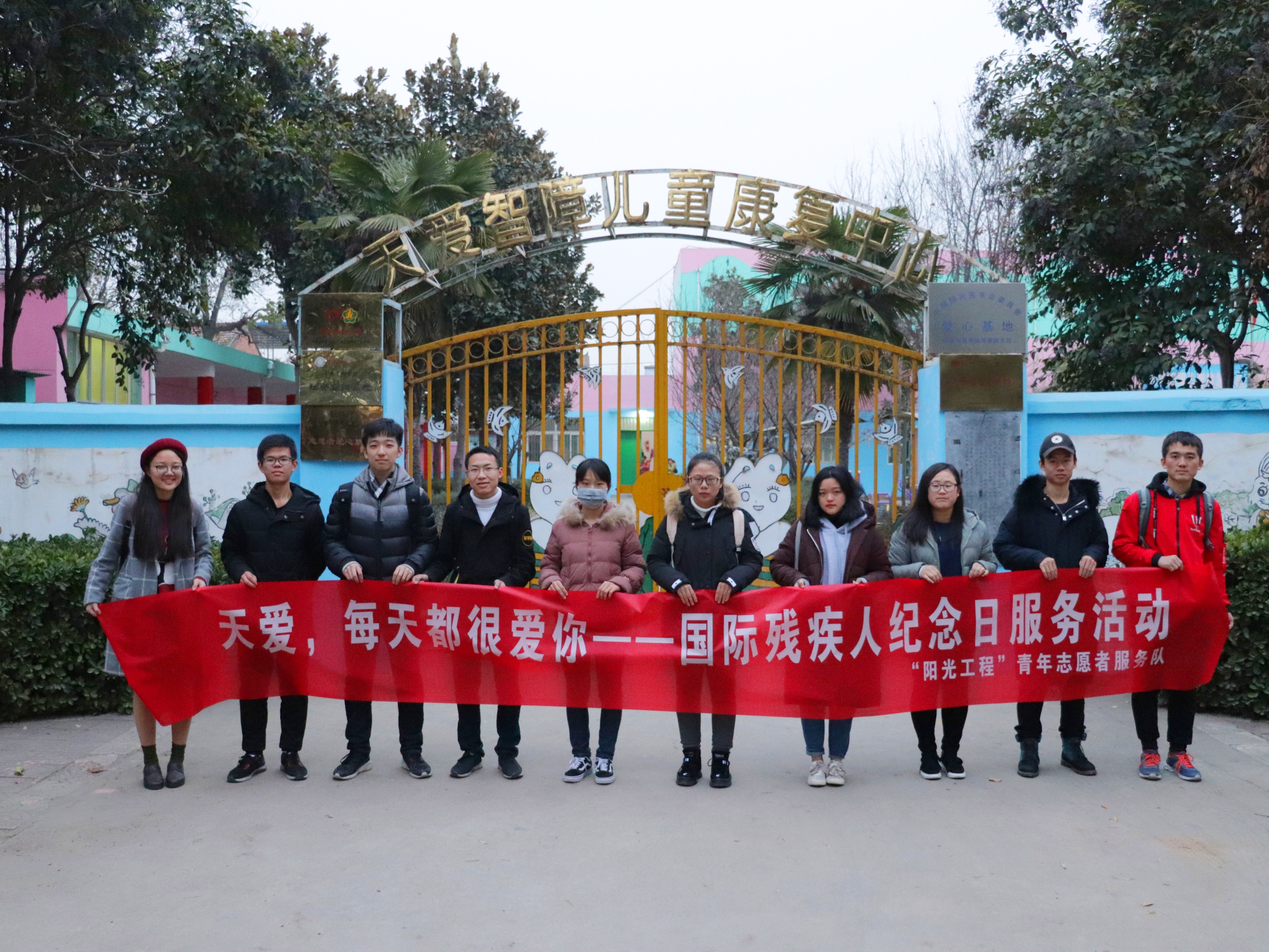 为促进同学们对自闭症儿童的关注和理解,同时为与"阳光工程"青年志愿者服务队长期合作的天爱启智智障儿童康复中心的孩子们送去关怀与温暖,“阳光工程”在12月3日——国际残疾人日,下午三点,组织志愿者到天爱启智智障儿童康复中心开展志愿服务活动。
