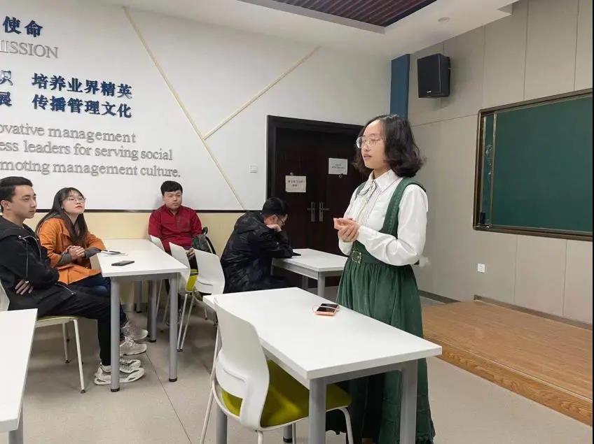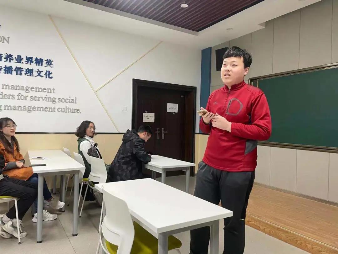 )发言。胡溪洋同学结合自身参加科技竞赛的经历,给大家分享了竞赛保研的政策和注意事项,并鼓励工程管理专业的同学积极参加项目管理大赛,同时也对保本校和保外校的利弊进行了分析。