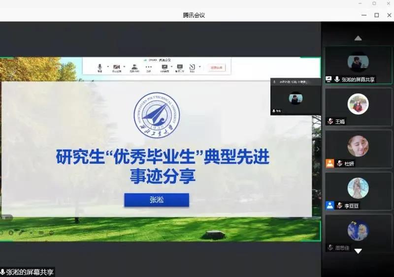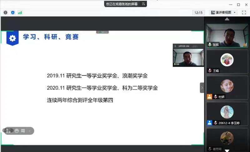 三位毕业研究生同大家交流分享自己学业、就业以及生活等方面畅谈自己的经历与感悟。学院本硕博共计170余人通过腾讯会议在线参会,会议由辅导员吴蓓老师主持,旨在帮助研一研二同学们拓宽世界,树立榜样。