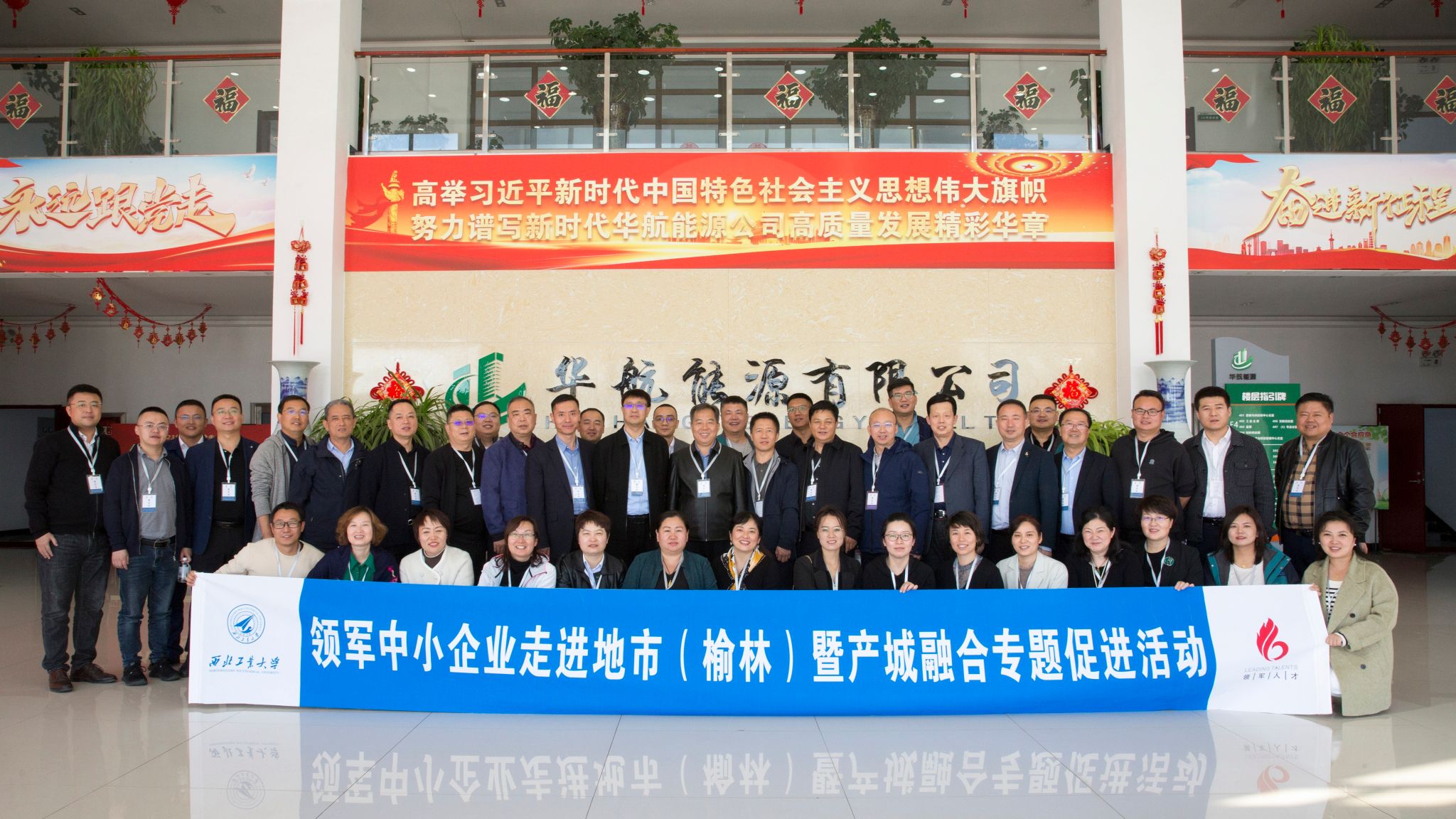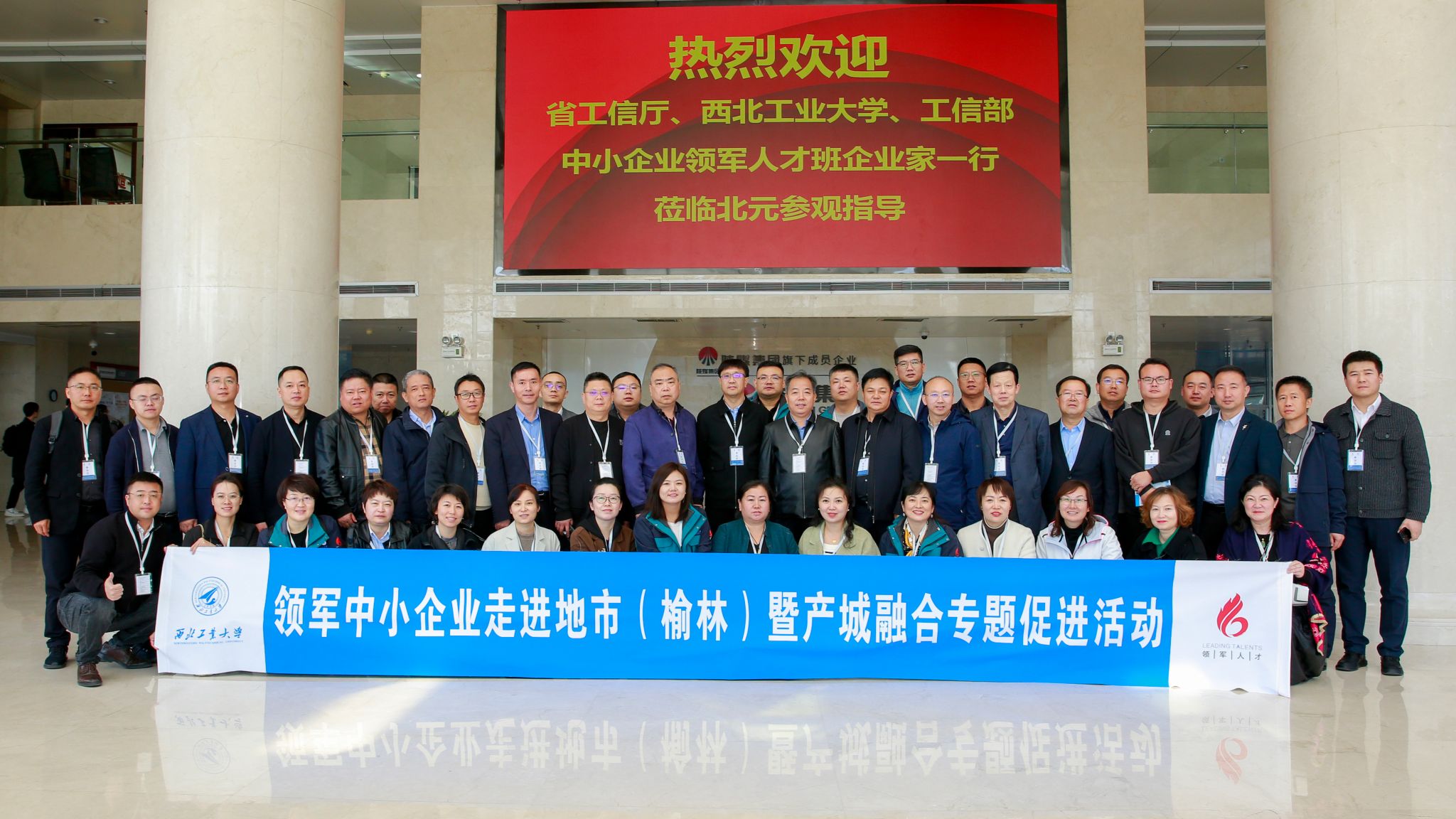 副院长郭云涛,陕西省中小企业人才服务中心副主任李卫科及工信部中小企业经营管理领军人才西工大-陕西班45名企业家学员参加了本次活动。活动得到了榆林市工信局、发改委、外事外经局、高新区及经开区(榆神工业区)的大力支持。