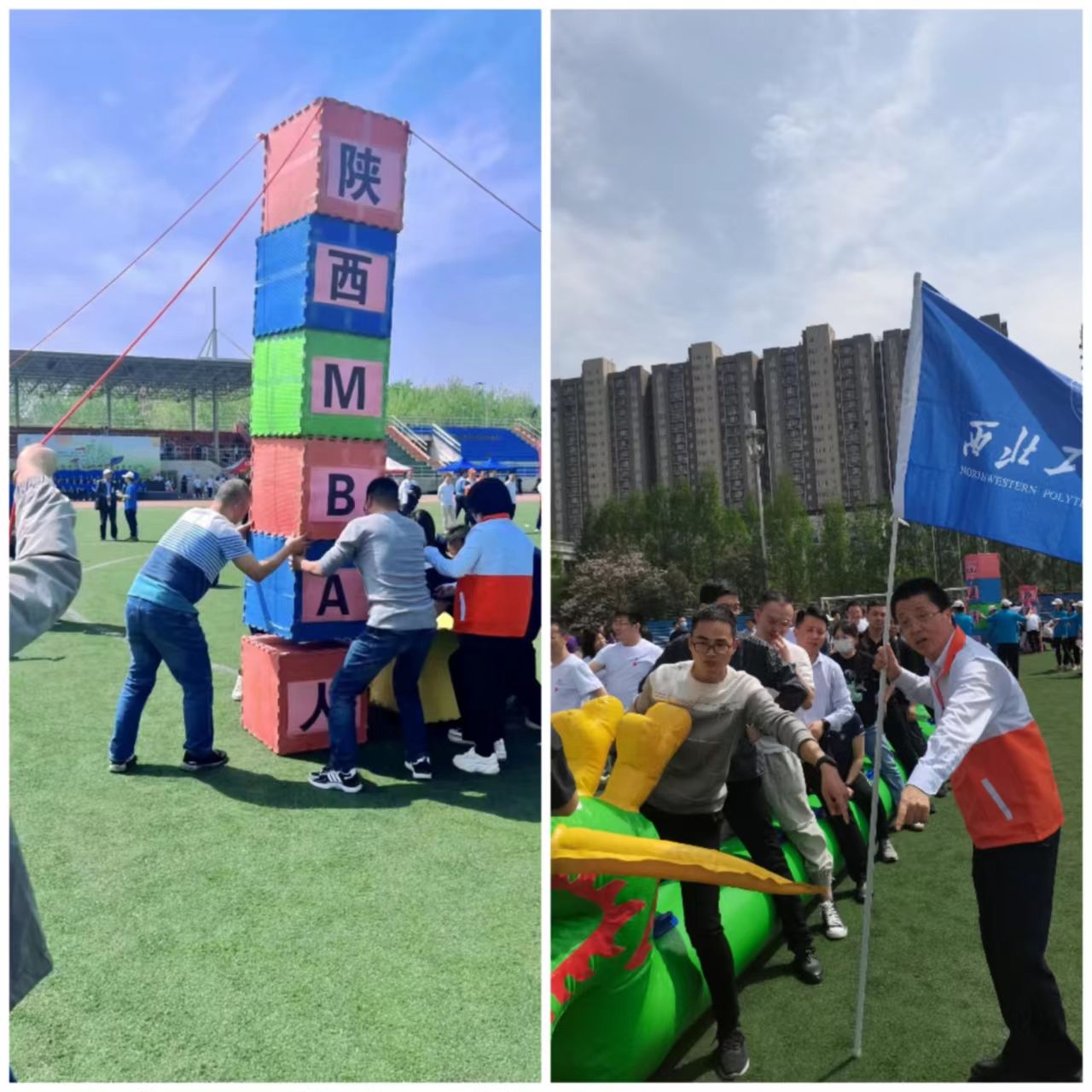 2022级陕MBA40多位学员代表全程参加了“旱地龙舟”“蒸蒸日上”和“拔河比赛”所有项目,赛出了成绩,赛出了友谊,展示了西工大陕西MBA人的风采。最终荣获“蒸蒸日上”项目团体二等奖和最佳贡献奖。