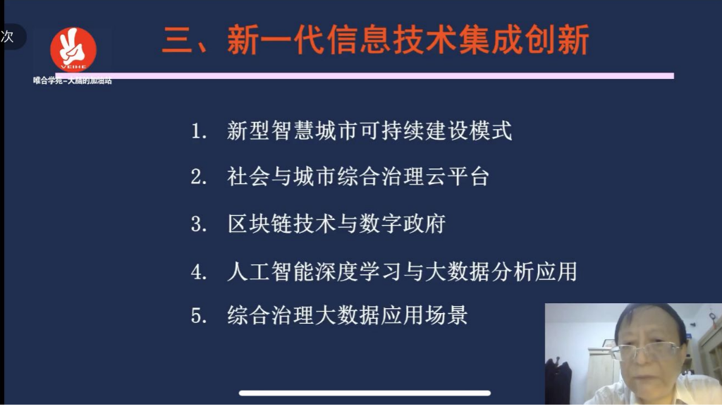 李林教授首先介绍了习近平总书记关于新型智慧城市理论体系,提出了“分级分类”是方法论,“三融五跨”是总原则,“打通信息壁垒”是技术总路线,“两个全国”是总目标,“大数据”是建设新型智慧城市抓手,“信息基础建设”是关键,“人工智能”深度融合应用是战略,“区块链”技术集成创新是突破口。其次是要构建“六个一”核心要素,包括建立一个开放的体系架构、一个统一的标准体系、一张天地栅格网、一个总和的数据体系、一个运行指挥中心和一个通用功能平台。再次是利用新一代信息技术进行集成创新,建立新型智慧城市可持续建设模式,建立社会与城市综合治理云平台,利用区块链技术建立数字政府,通过人工智能深度学习和大数据分析应用综合治理各大数据应用场景。最后李教授提出要建立新型基础设施,包括信息基础设施、融合基础设施和创新基础设施,面向高质量发展需要,为技术创新夯实了基础。课程中通过对新加坡“智慧国”、数字中国、4S