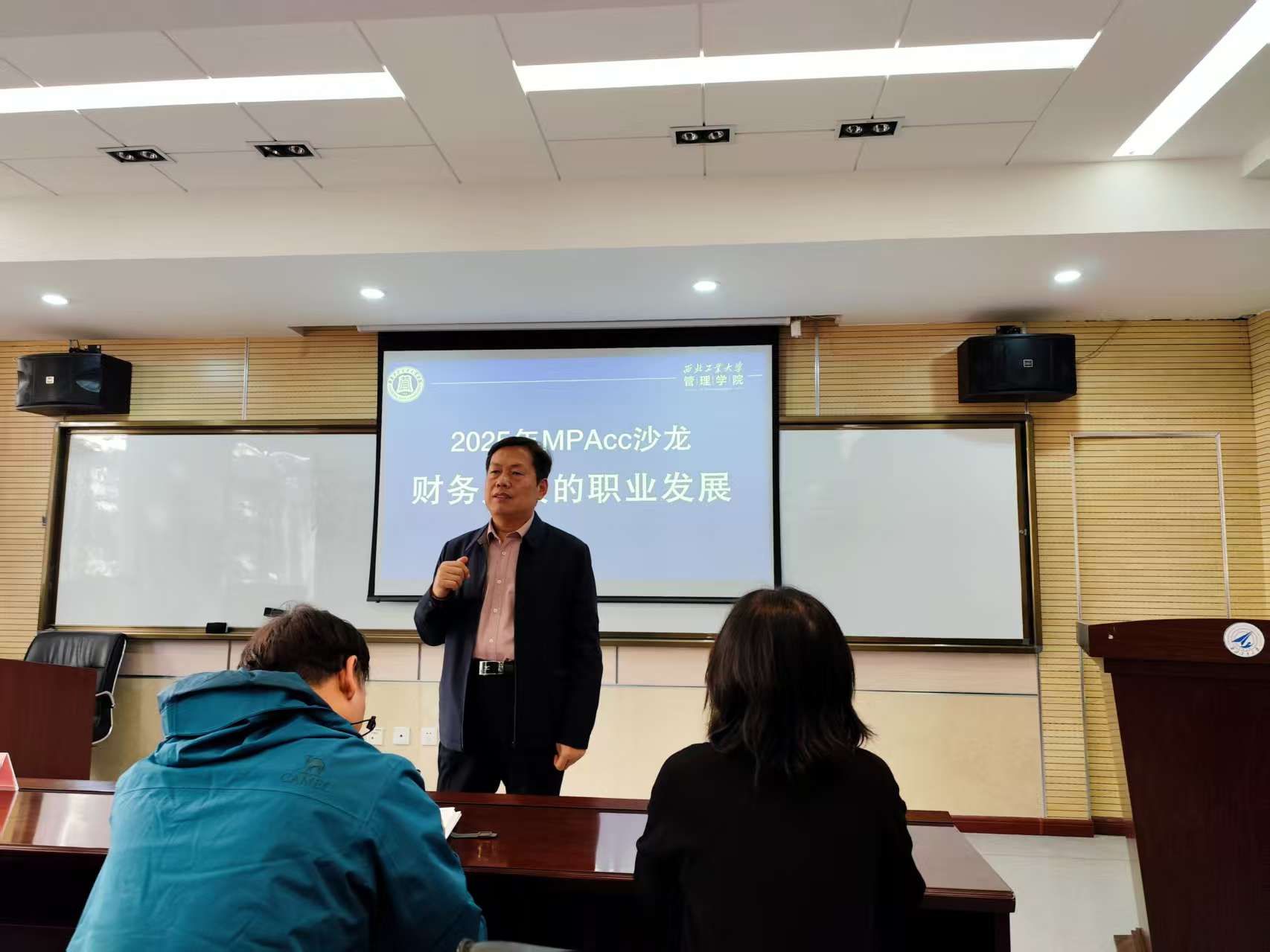 开展了主题为“财务人员职业发展”的沙龙活动,本次活动由MPAcc教育中心主任金帆老师主持。沙龙活动邀请了陕西鼓风机(集团)有限公司集团总审计师师国强、中国联通西安市分公司财务经理黄斌和吉利汽车财务中心宝鸡公司财务部部长孙雯娟等3位资深专家作为嘉宾,学院2024级和2025级MPAcc学生和部分MBA专业的学生热情参与。