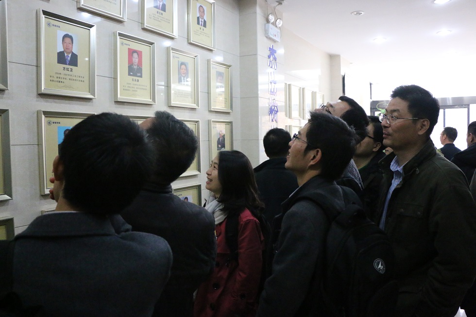 党委书记李小聪亲自给学员们担任讲解员!八点没到,李书记与王克勤副院长已早早地在校史馆前等侯同学们的到来。李书记首先从校歌墙前讲起,从校歌的产生、内容与含义,然后再到校史馆内陈列的开车漫画