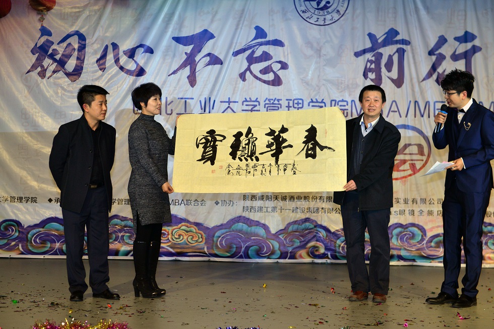 历届优秀校友,2015级返校开题的所有同学及2016级西安班、咸阳班的MBA/MEM/ME学员共300余人参加并观看了晚会。晚会得到了陕西天成酒业、陕建集团、香港洛施实业、A-Lens美瞳眼镜全能店和上海融发贵金属等单位的赞助支持。