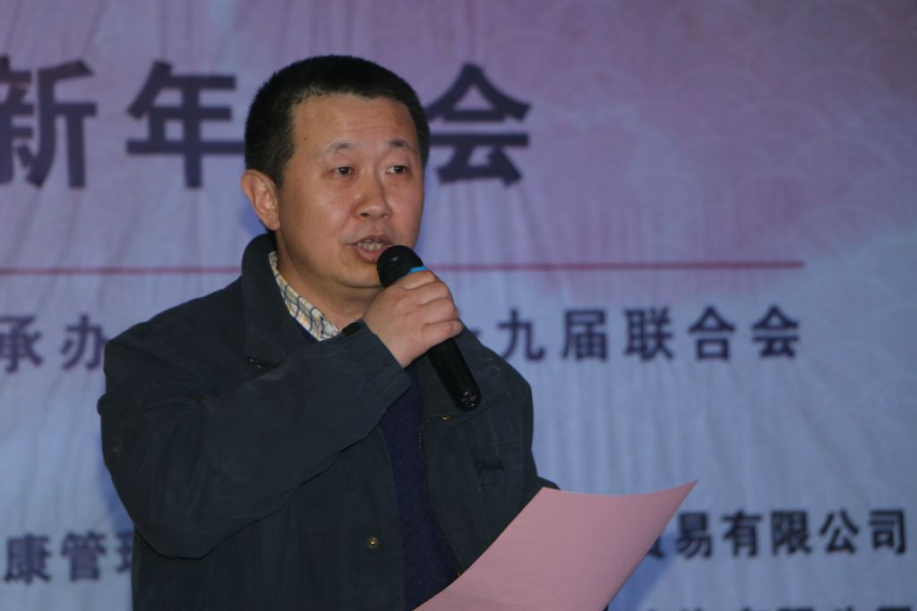 晚会伊始,校友总会秘书长张英群老师致辞,对开车漫画