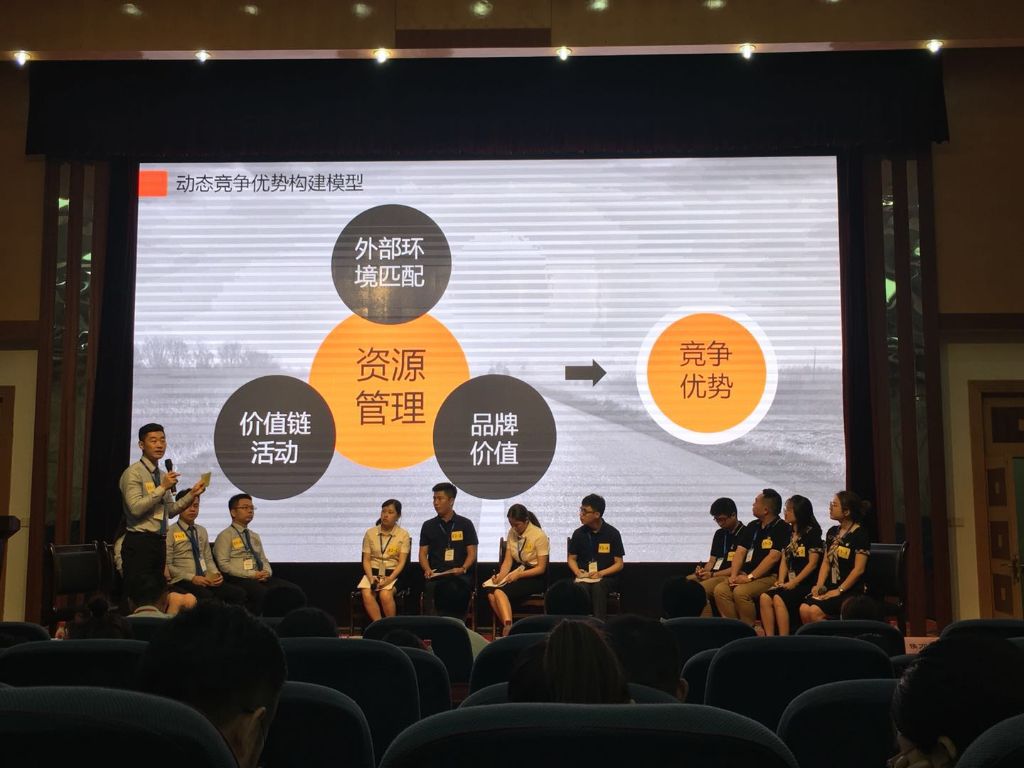 比赛由赛前盲审和现场竞赛两个阶段组成,赛前盲审于6日晚进行,7日进行现场竞赛,通过给定主题案例分析,并采用大小PK制竞争对抗。案例下发后仅60小时的赛前准备期,学员冒着酷暑连续奋战,认真阅读案例材料,深度挖掘企业的各种信息和数据,通过开展头脑风暴等形式,采用前沿的共演战略和动态竞争能力等理论工具,在朱煜明和金帆两位老师的精心指导下,相互密切配合,充分发挥各自的特长和优势,反复打磨和修改汇报材料。