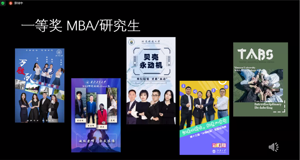 2019级MBA学生黄鸿明、范娟、李余辉、黄菲组成的“Bravo”队,通过商业路演视频拍摄、英文团队介绍、平台商业模拟运营、商演答辩和竞争对手互相问答等环节的综合比拼,最终喜获MBA研究生组全国一等奖(在十个获一等奖的队伍中排名第四位),也是西北地区唯一获此殊荣的高校。