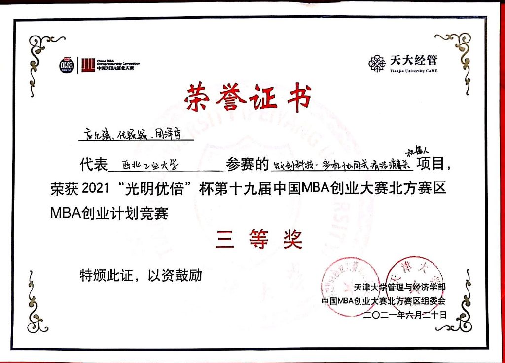 应允强、代颖颖、周泽宇组成的“蚁创科技---多机协同式清洁消杀机器人”项目团队,在王颖晖、沙清华、顾振芳老师的指导下,经过激烈的角逐在北方赛区决赛中荣获三等奖。