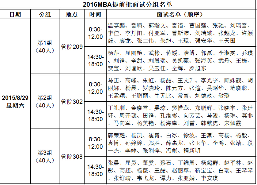 注:面试后7天内在开车漫画 MBA主页(glxy.kaichemh1.com/mba)公布提前批面试成绩优秀、良好名单,考生登录查询