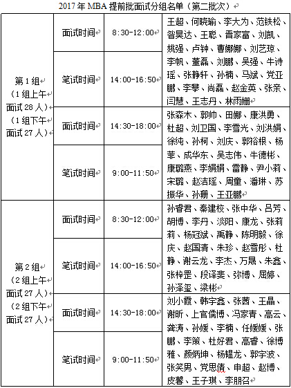 2017年MBA提前批面试安排(西安第二批次)