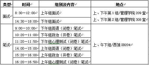 (1)考生分为上午面试组、下午面试组(各两组),上、下午面试组的笔试、面试交替进行,请下午面试组的考生务必按时参加上午9:00开始的笔试