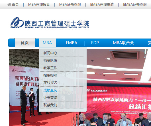 3. 登陆陕西工商管理硕士学院网址//www.s-mba.com/ ,在“MBA”栏目中点击“成绩查询”,点击“入学考试成绩查询”,考试批次选择 “2017级06月入学考试”,并输入姓名、准考证号码查询。