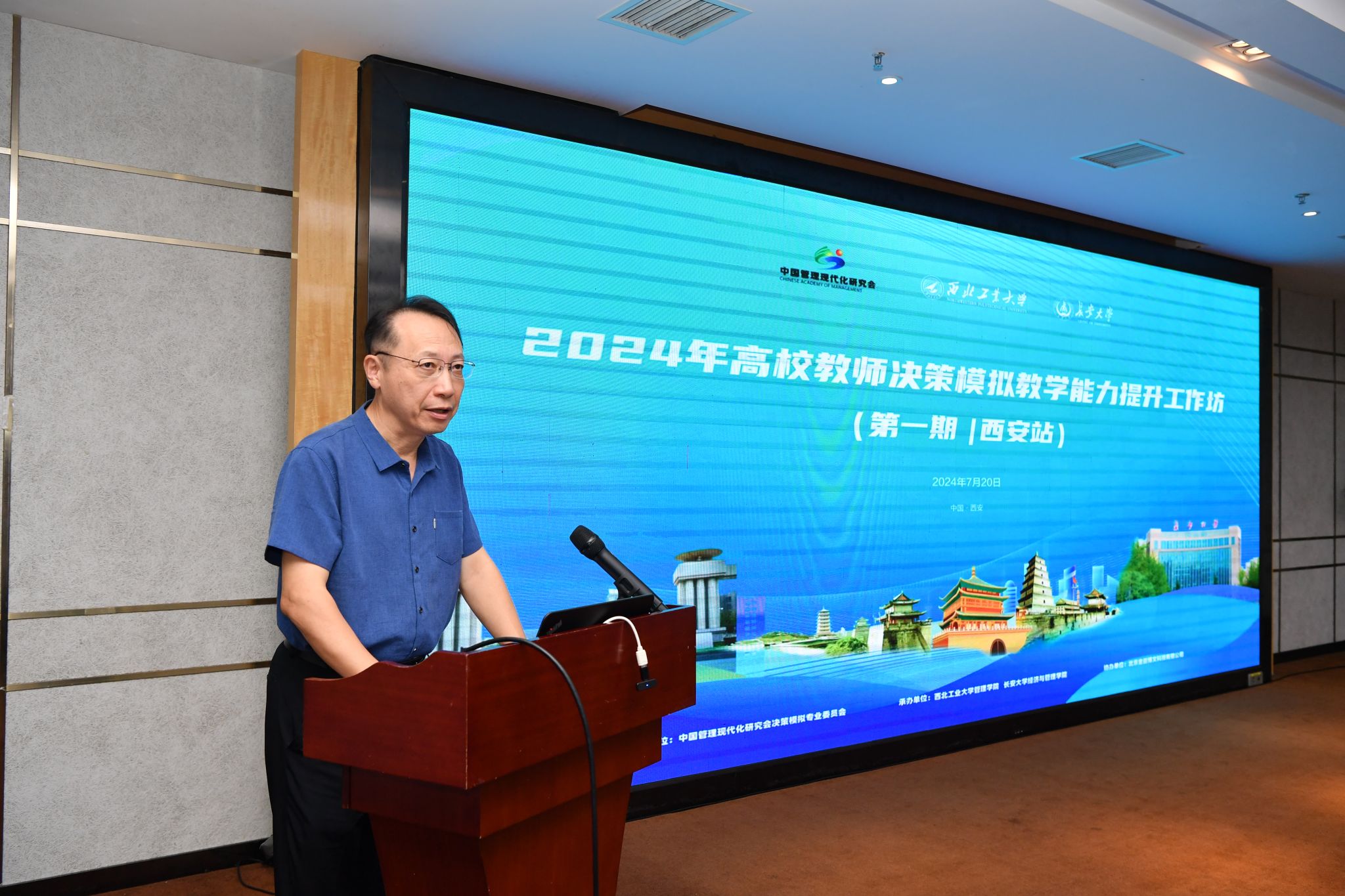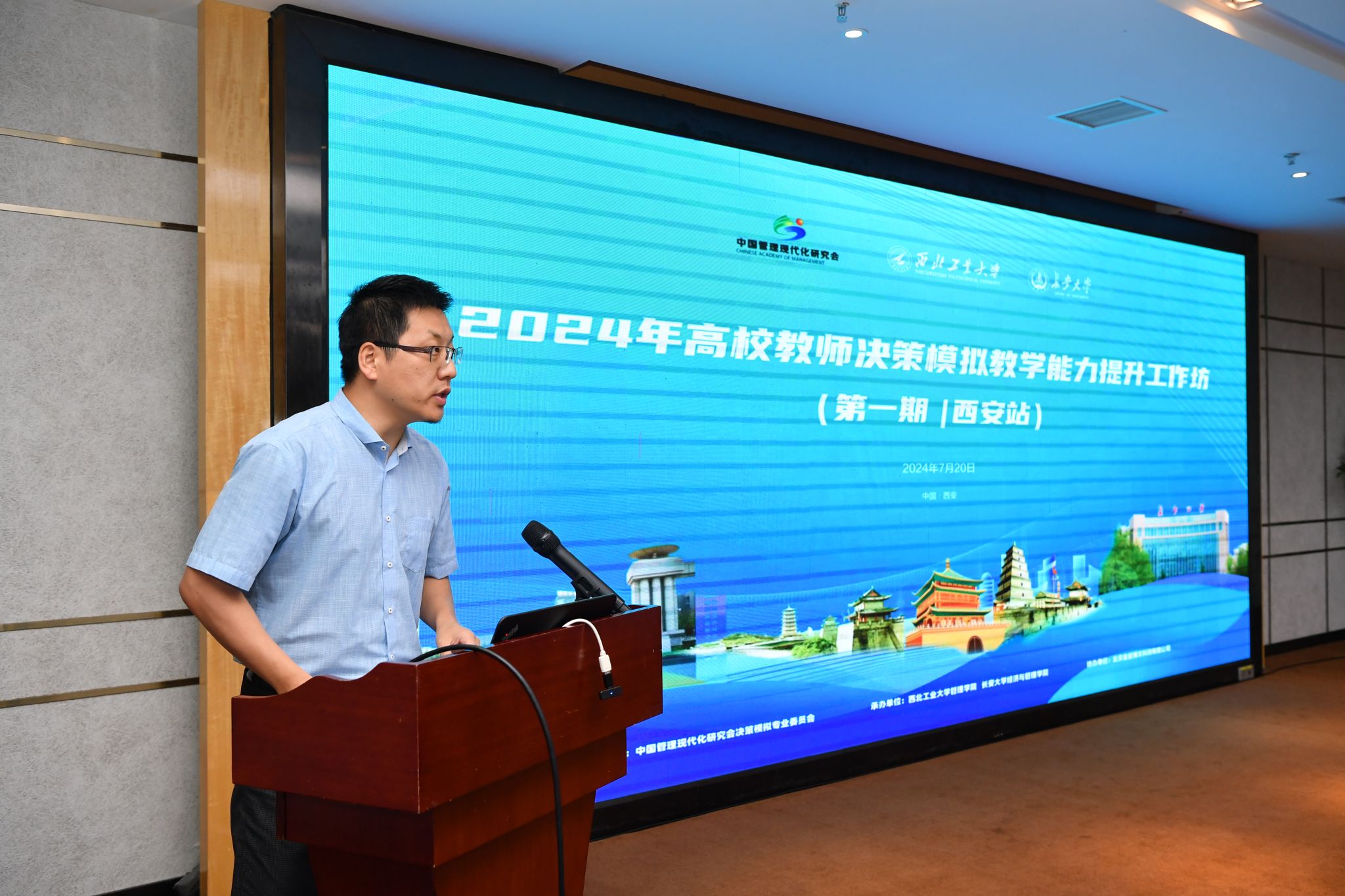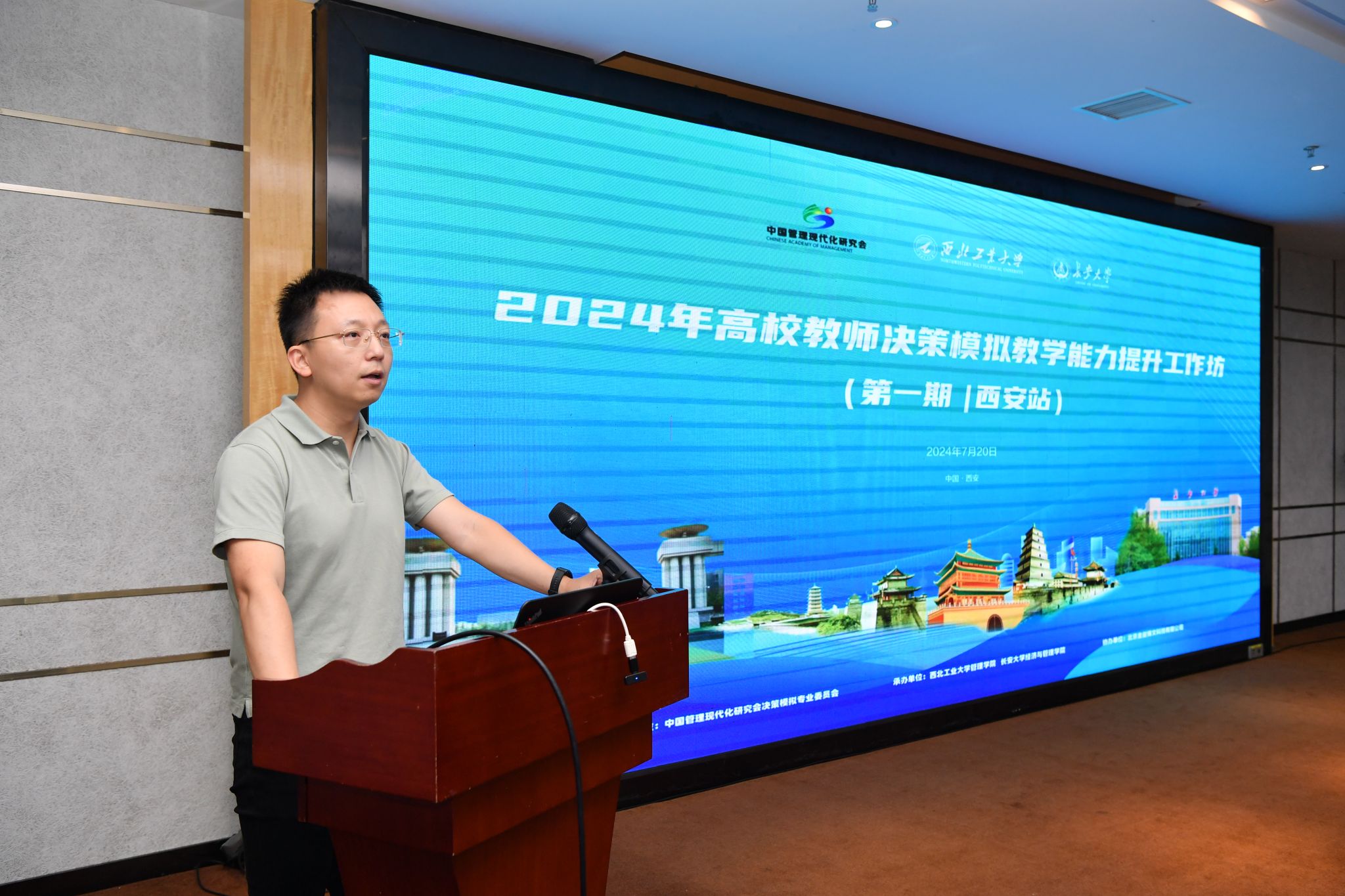 院长助理李乘龙以及长安大学研究生院副院长徐玮依次致辞。三位领导在致辞中对与会的高校教师表示热烈欢迎和诚挚感谢,并强调了实操性强、趣味性高的企业决策模拟教学方法在提升学生学科兴趣和培养高质量管理人才中的重要性。