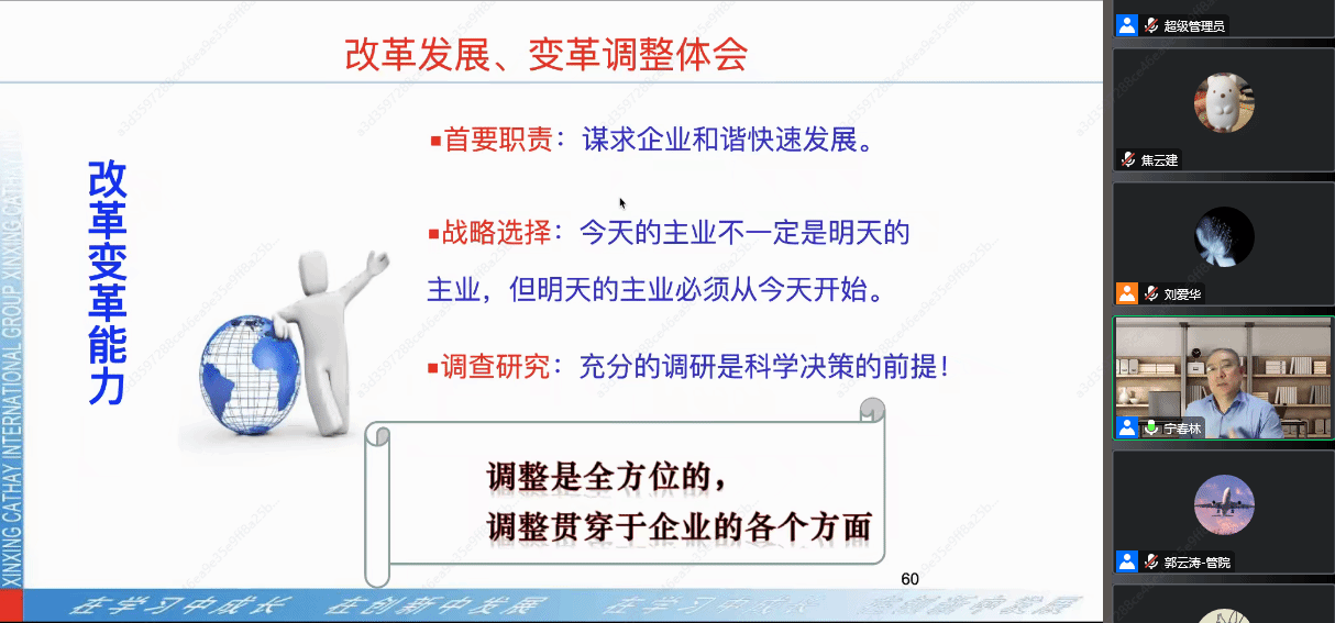 宁老师从何谓战略管理出发,阐明了企业战略管理的重要意义,强调企业的长久发展离不开战略管理与规划。结合自身丰富的实践经验,宁老师讲述了首钢集团、新兴重工集团战略规划过程以及战略规划给企业带来的“红利”,同时也分享了各部门如何在战略规划制定中进行合作,企业如何保持改革变革能力。