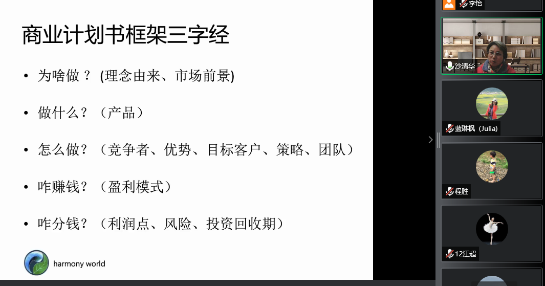 沙老师围绕路演PPT的主题制作、PPT的内容撰写、演讲表现和问答技巧几个方面剖析了大赛路演全过程需要注意的事项。建议参赛团队精心准备,完善图、表和数据,优化PPT,重视展示项目的独特性,进行多次路演训练,从而保障在复赛中更好地表现。