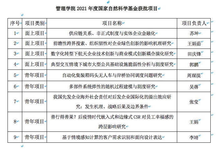 本年度学院国家自然科学基金立项项目取得的突破是全院教师共同努力的结果。今后,学院将进一步做好科研项目申报与动员工作,努力提高科研成果产出水平及质量,助力学校的“双一流”建设。