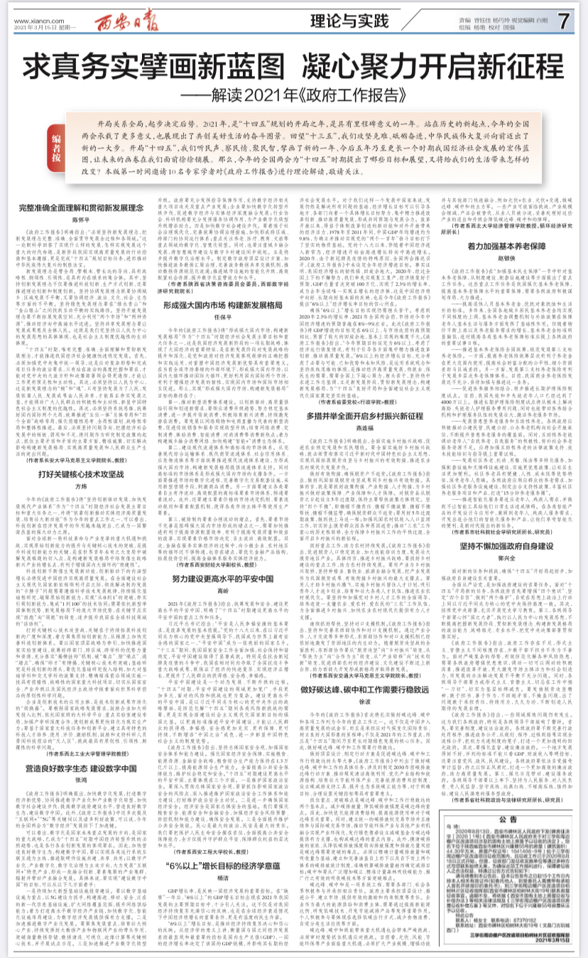 3月15日,《西安日报》第7版理论与实践“解读2021年《政府工作报告》专栏”刊发了开车漫画