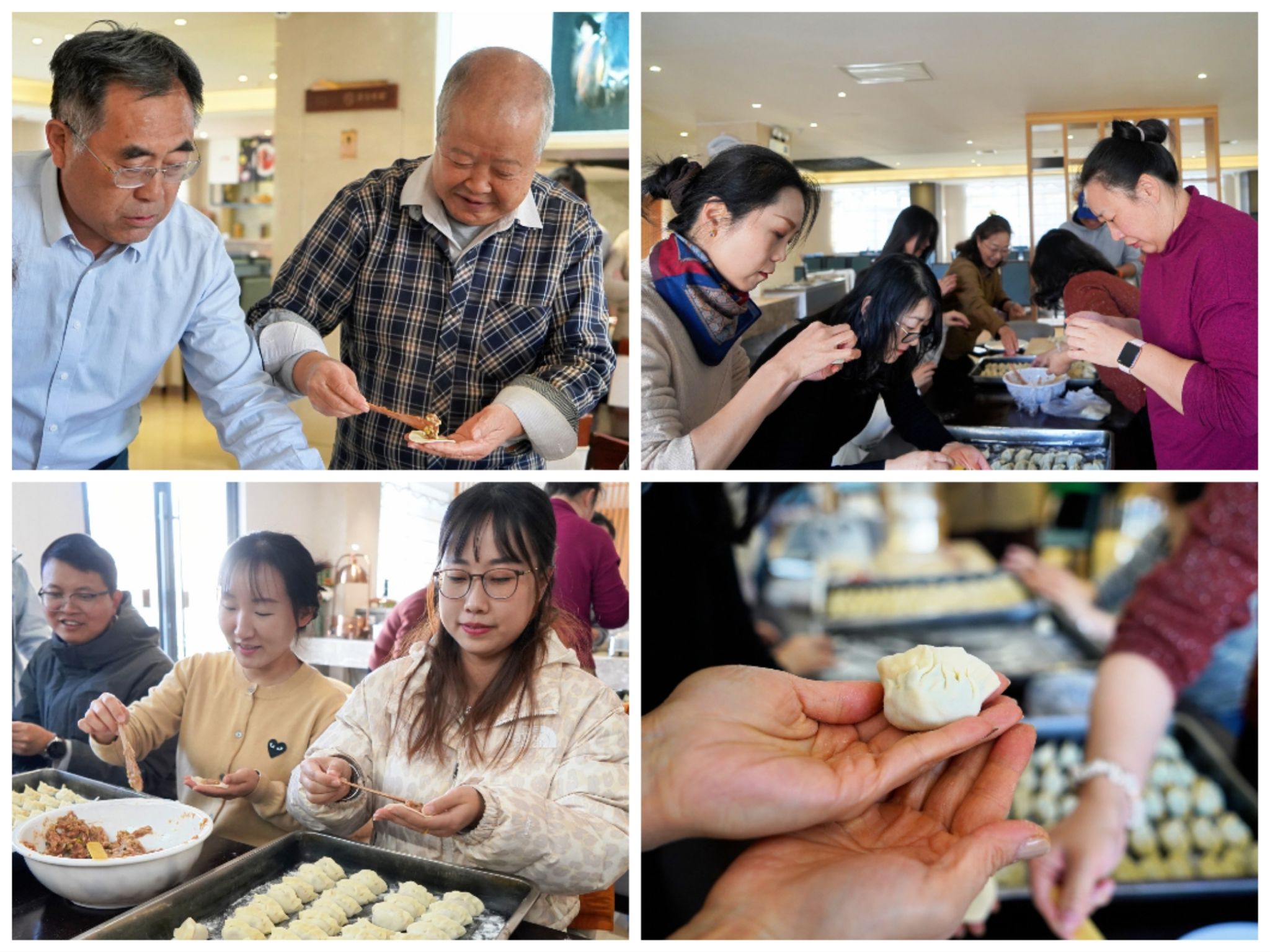 在南山苑组织包饺子活动,教职工暂别案头忙碌,在欢声笑语中感受集体温情。