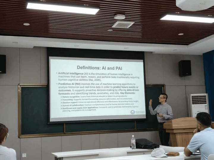 5月29日上午,曹光明以《Trustworthy AI: The Role of Transparency, Explainability, and Ethics in AI Adoption and Organizational Decision-Making》为主题,基于信任理论构建研究模型,通过对英国300家企业管理者的调研数据,揭示了可信赖AI要素对AI采纳效果的影响机制。次日,曹光明围绕《Tips for Writing a Research Paper for Publication》展开方法分享,结合国际顶级期刊发表经验,解析论文核心架构。从摘要凝练、引言构建、文献综述逻辑到假设开发与讨论,系统解析学术论文的写作框架。